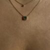 Collier Eole pendant carré en plaqué or avec oxydes de zirconium blancs et vert.