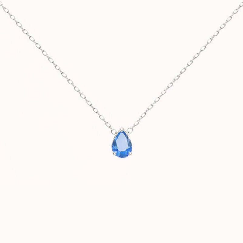 Collier Lys bleu argentée avec zirconium en forme de goutte.