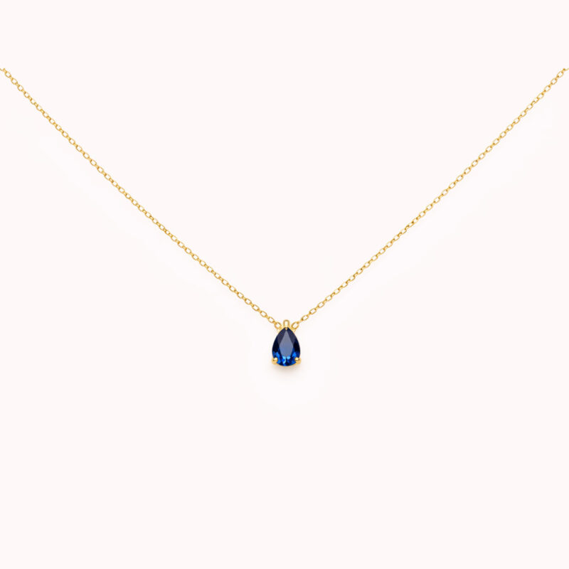 Collier Lys bleu foncé doré avec zirconium en forme de goutte.