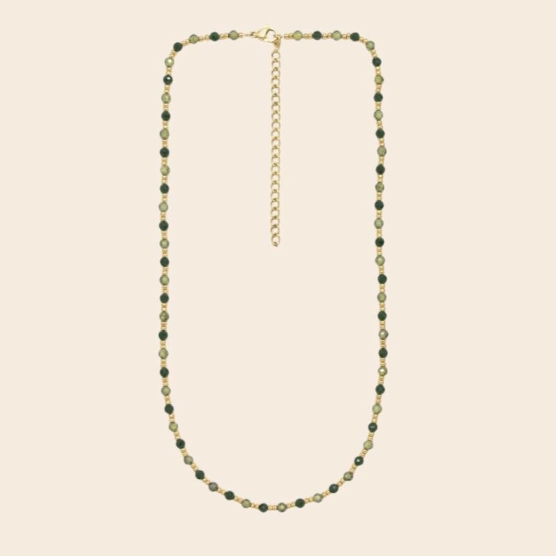 Collier multi pierres, péridot et grenat vert en acier inoxydable dorées. Modèle parfait pour créer vos plus belles compositions.