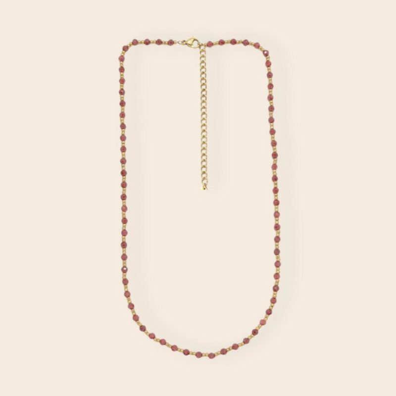 Collier multi pierres, rhodochrosite  en acier inoxydable dorées. Modèle parfait pour créer vos plus belles compositions.