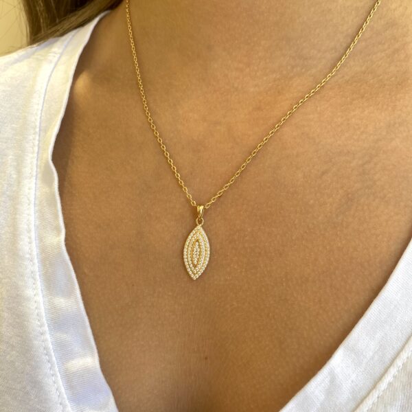 Collier navette Olivi doré avec incrustation d'oxydes de zirconium.