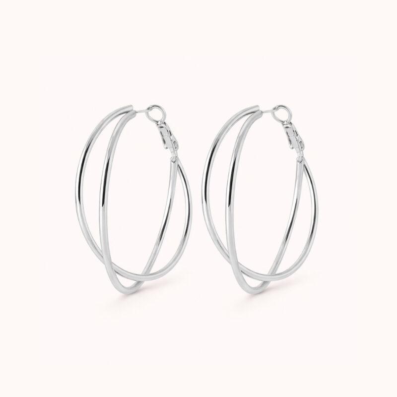 Créoles  effet double en acier inoxydable argenté