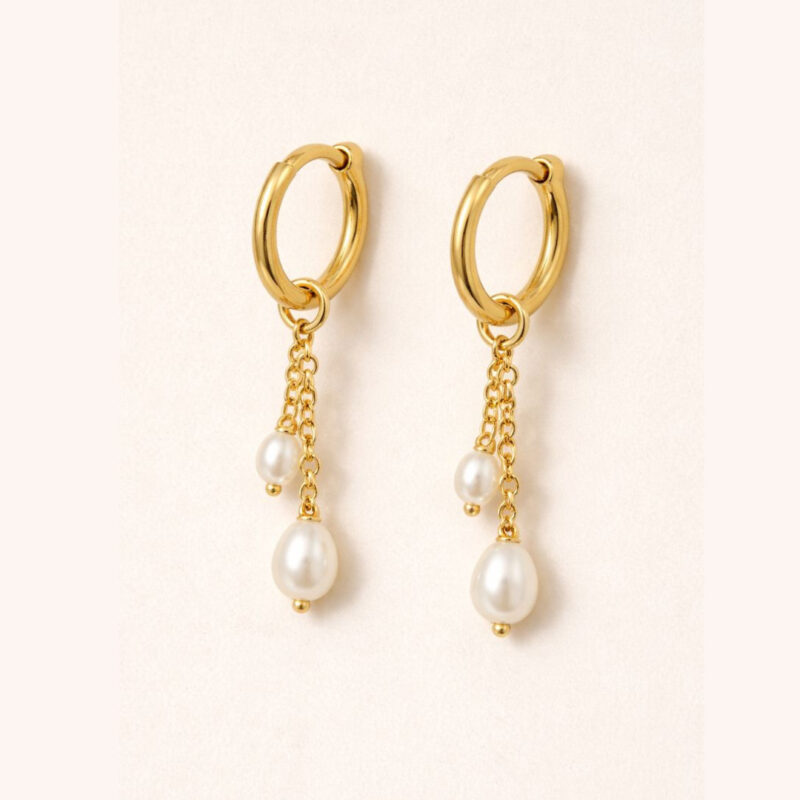 Créoles pendante perle blanche en plaqué or