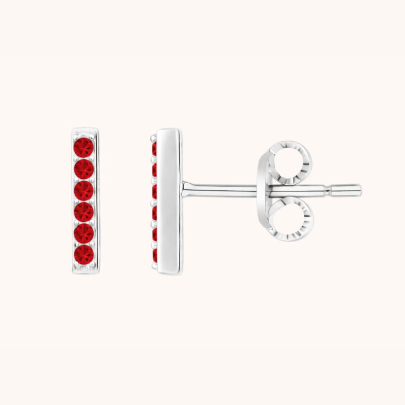 Puces barre argentées avec incrustation d’oxydes de zirconium rouge.